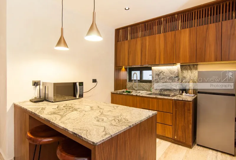Estudio en Venta en el Corazón de Tulum Este departamento en planta baja está ubicado en la exclusiva zona residencial de Aldea Zama, en Tulum. Este residencial se ubica a tan solo minutos del centro bohemio, la nueva carretera hacia la playa y la famosa zona hotelera con sus hermosas playas de arena blanca. Para los amantes de la naturaleza, las ruinas cercanas de Tulum y Cobá, así como decenas de impresionantes cenotes, ofrecen infinitas oportunidades de exploración y aventura. Este estudio ofrece la combinación perfecta de lujo, ubicación y estilo de vida. Cuenta con un diseño de planta abierta con materiales naturales, acabados de alta gama y grandes ventanales que permiten la entrada de abundante luz natural. El departamento se abre hacia una terraza completamente privada con una alberca tipo plunge y un jardín. Es ideal tanto para una persona como para un inversionista astuto que busca un refugio en el Caribe para vacacionar o una propiedad rentable para rentas en Tulum. - Vista a la selva - Amueblado - Terraza - Alberca tipo plunge - Caja de seguridad - Lavadora y secadora - Aire acondicionado - Se permiten mascotas - Alberca comunitaria Póngase en contacto con uno de nuestros agentes hoy mismo para obtener más información.