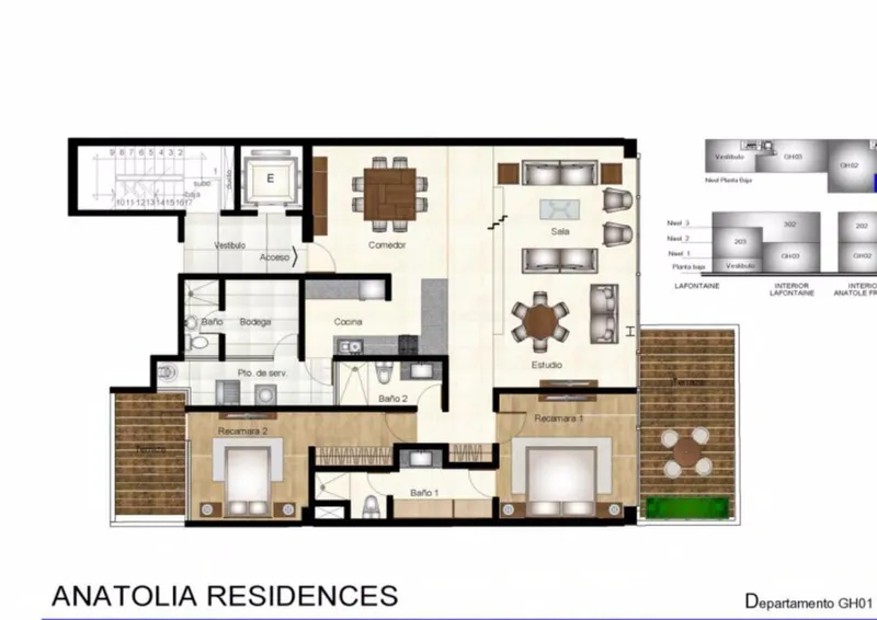 Espectacular pre-venta de departamento en obra blanca de lujo en Anatolia Residences, Polanco con 2 recamaras , baños, vestidor en la recamara principal y en la segunda closets, sala-comedor, cocina, estudio tv, bodega, terraa 44m2 cuarto de servicio, lavanderia. Recuerda que .......25 AÑOS DE EXPERIENCIA HACEN LA DIFERENCIA.