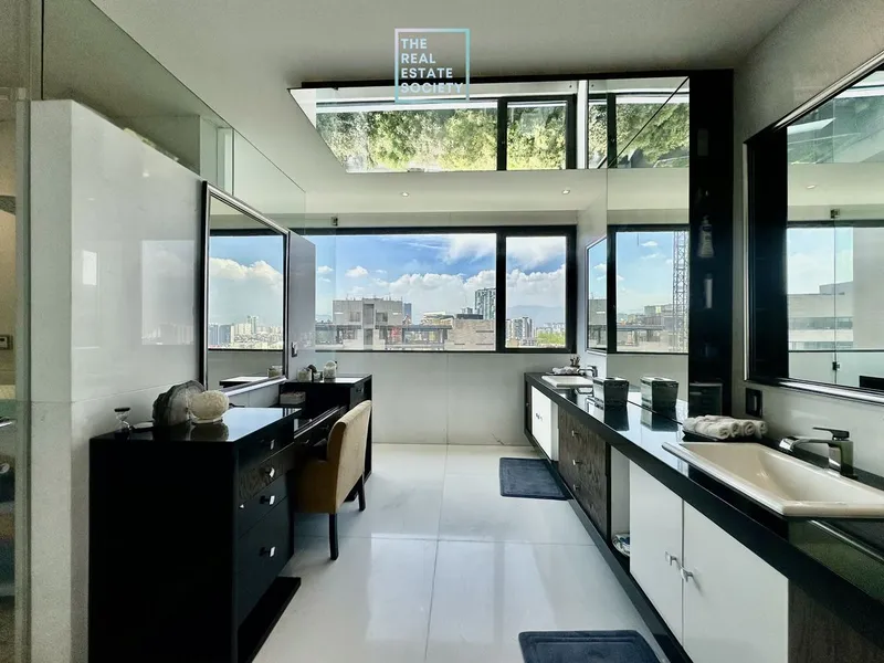 Impecable departamento en uno de los condominios mas exclusivos de Bosques de las Lomas. Son 364m2 interiores + 36m2 de terraza! Entrando por el elevador que es directo al piso encontramos sala comedor de muy buen tamaño con vistas a la ciudad. Terraza amplia con sala y comedor. Cocina con alacena, area de lavado y cuarto de servicio. Family room muy amplio y cozy. Recamara principal con vistas a la ciudad, mega vestidor y baño de muy buen tamaño. Recamaras 2 y 3 con baño y vestidor cada una también. Acabados con mármoles en sala comedor en placa grande, madera de ingeniería en recamaras. Las amenidades son un espectáculo, con albercas, gym, jardines muy muy amplios, salón de fiestas, gimnasio, cine, fire pits, restaurante y mucho mas. Que no te lo ganen.