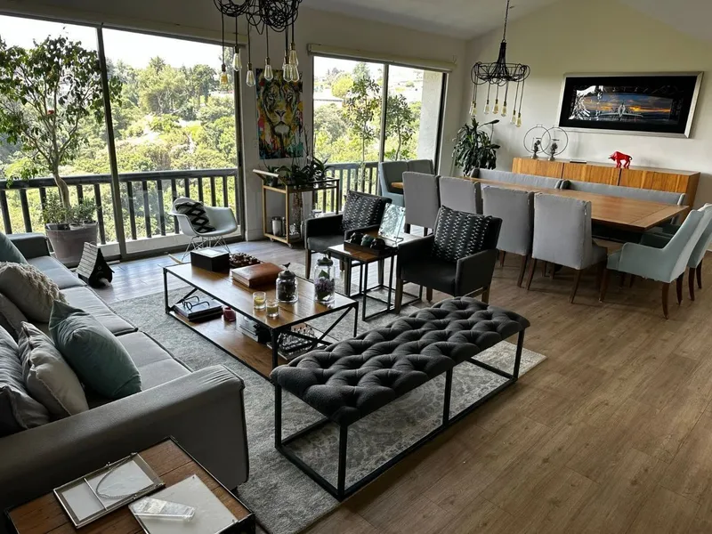 Lindo departamento en fraccionamiento El Refugio, con amplios espacios, mucha luz, tiene 3 recámaras, 3 baños y medio, techos de doble altura. family, recámara principal con baño y excelente vestidor, acabados modernos y de gran calidad. Cocina con cubierta de granito, cajones y barra. Recámara secundaria con tapanco y cada una de las recámaras con vestidor. Tiene excelentes amenidades y se vive super tranquilo. Con seguridad y buenas vistas verdes.