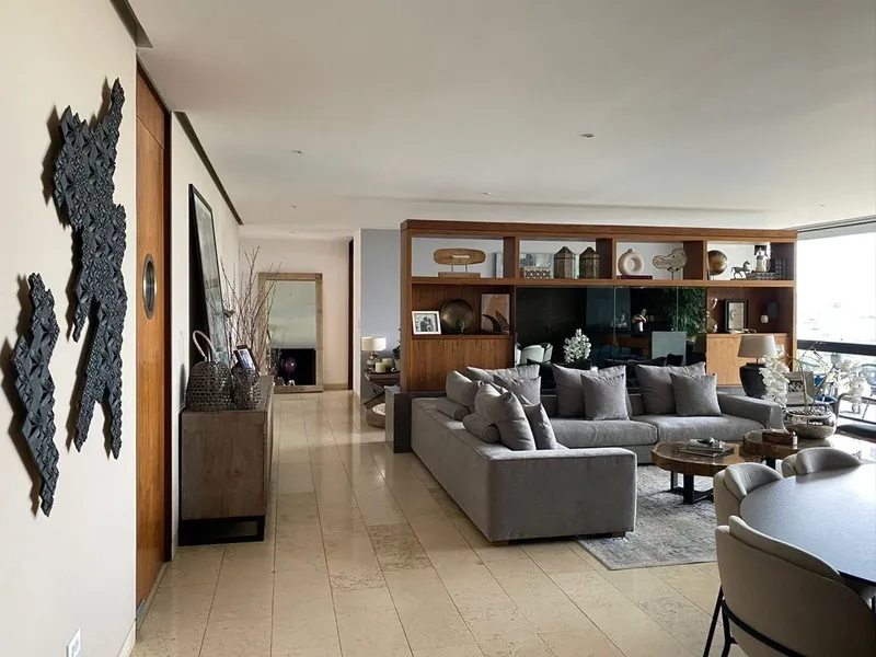 Exclusivo Departamento en Augusta Bosque Real Precio $21,500,000 MXN (No negociable) Ubicado en el corazón de Bosque Real, este impresionante departamento de 340 m² ofrece una vista espectacular al campo de golf de 18 hoyos y está justo al lado de la Casa Club. Con acabados de lujo y un sistema inteligente completamente integrado, esta propiedad es una oportunidad única. Características del Departamento: Área Total: 340 m² (278 m² habitables + 60 m² de terraza) Distribución: 3 recámaras, cada una con baño completo y vestidor Family Room Sala y comedor con acceso directo a la terraza Cocina integral con isla de granito Medio baño de visitas Mueble de blancos Área de lavado Cuarto de servicio con baño completo 3 lugares de estacionamiento 1 bodega Amenidades de la propiedad: Salón de eventos Salón de adultos Sala de yoga Gimnasio Ludoteca Alberca climatizada Roofgarden Cancha de padel Área de mascotas Lago privado Ubicación privilegiada: A solo 2 minutos caminando de la Casa Club de Bosque Real y con acceso rápido a las mejores opciones recreativas y deportivas de la zona. Este departamento se vende semi amueblado, con muebles hechos a la medida, y equipado con tecnología inteligente para brindarte la mayor comodidad. Precio $21,500,000 MXN (No negociable) No dejes pasar esta oportunidad única de vivir en uno de los desarrollos más exclusivos de la zona.