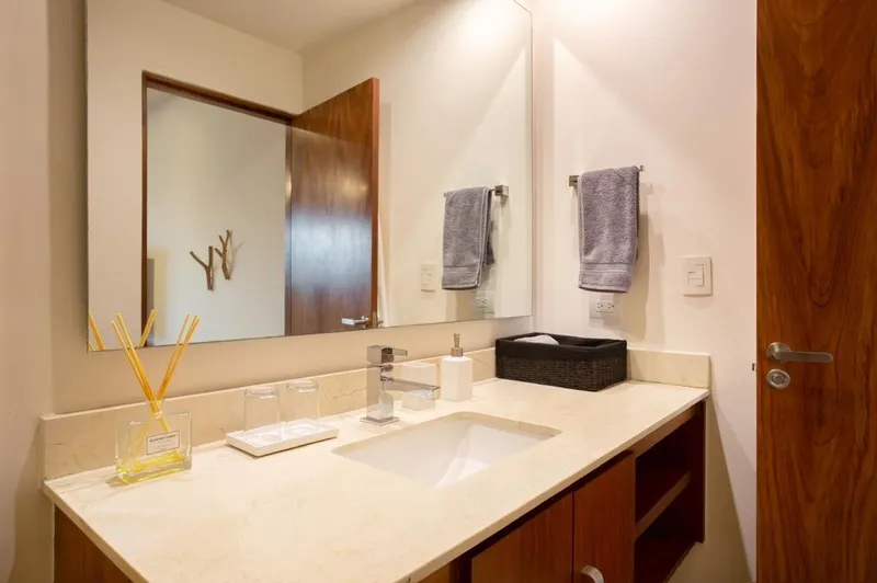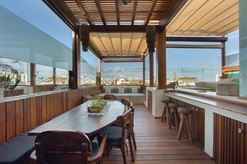 Les presento este lujoso Penthouse AAA en Playa del Carmen para las personas que saben diferenciar y apreciar la calidad, la belleza del interiorismo y el confort. Este hermoso penthouse se ubica en la mas cotizada y mejor calle dentro de Playa del Carmen, en la calle 38 norte, es una calle hermosa con una vegetación singular y Restaurantes con el mejor ambiente, se ubica a 1 cuadra de la famosa y hermosa playa de Shangri-La, esta zona es la elegante y privilegiada que buscan los extranjeros. Superficie: 211 m2 totales Planta Baja: 100m2 con terraza Planta Alta: 111m2 con terraza. 1 cajon de estacionamiento y bodegua chica de guardado de cosas de playa. Se entrega completamente amueblado, decorado y con accesorios cocina y baños. DISEÑO INTERIORES-CONFORT-IMPECABLE DESCRIPCION: Es un LOCK OFF, se pueden usar independientemente la PB de la Planta Baja para usarlos / rentarlos separados como 2 Unidades o juntarlos para conformar un Penthouse. Si se renta solo la PB comparte el closet de lavado con la planta alta y se tiene ahí una Centro de Lavado con Secadora, el acceso es por la misma puerta principal a un vestíbulo y ahí la PB tiene su propia puerta y la planta alta sube por unas escaleras y tiene también su propia puerta. PLANTA BAJA: -2 Recamaras con baño completo y 2 camas matrimoniales, buró y closet mueble con TV cada una. -Amplia cocina -Comedor para 8 personas -Sala con Mueble TV -Terraza con extraordinaria vista a zona selva y mar, Sillón Puff, mesita y Hamaca. Closet Alacena. PLANTA ALTA: -Recámara principal: con cama King Size, baño completo, buroes, closet y mueble con TV. -Studio de Tv con Kitchenette y un Day* Bed tamaño Queen size convertible a dormitorio en la noche para 2 personas con baño completo y closet mueble. Closet Alacena en pasillo. Notas importantes: El studio esta en el paso para salir a Terraza, por lo que ya si alguien duerme ahí se cierran cortina del pasillo y cortina de ventana y tiene privacidad. La kitchenette no tiene parrilla para cocinar, solo Horno de microondas, horno de convección, Cafetera, Dispensador de Agua y el Refrigerador* caben 3 bolsas de hielo fácilmente. TERRAZA (Ubicada en Planta Alta): Alberca (plunge pool) con calentador y cascada decorativa, comedor para 8 personas techado con pérgola, sala lounge exterior y barra con bancos, tarja con agua para lavar y hielera empotrada. Techos y persianas con sistema motorizado que abren y cierran via una App o control remoto para poder disfrutar de la terraza cuando llueve ya que cierra herméticamente la zona y protege del viento en época de frío, un verdadero lujo y confort. TOP POINT. AMENIDADES DEL CONDOMINIO: Roof top con extraordinaria vista al mar y selva, alberca tamaño semi olímpica, jacuzzi, area de camastros, barra, sala lounge y en sótano Gimnasio totalmente equipado. NOTA: Dentro de Playa es uno de los mejores edificios de departamentos por su ubicación y diseño, es un proyecto que gano el premio de Obra del año 2016 ya que aparte de ser muy bonito, es terraceado y le quita impacto hacia la calle, se conservo un cenote decorativo y un árbol Amate enorme y precioso en la entrada, tiene un roof top padrísimo con alberca, jacuzzi, asoleadero, barra y sala exterior y lo mejor es la ubicación que esta en la mejor calle de Playa del Carmen con excelentes Restaurantes.