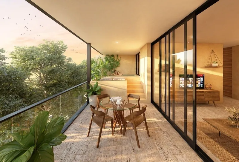 Desarrollo de 36 confortables departamentos con el predominio máximo de acabados propios de la región, texturas rústicas, colores cálidos, sin perder la elegancia en los detalles. Amenidades * Roofgarden • Terraza • Alberca • Asoleadero • Área Lounge ENGLISH Development of 36 comfortable apartments with the maximum predominance of finishes typical of the region, rustic textures, warm colours, without losing elegance in the details. Amenities * Roofgarden • Terrace • Pool • Asoleadero • Lounge Area