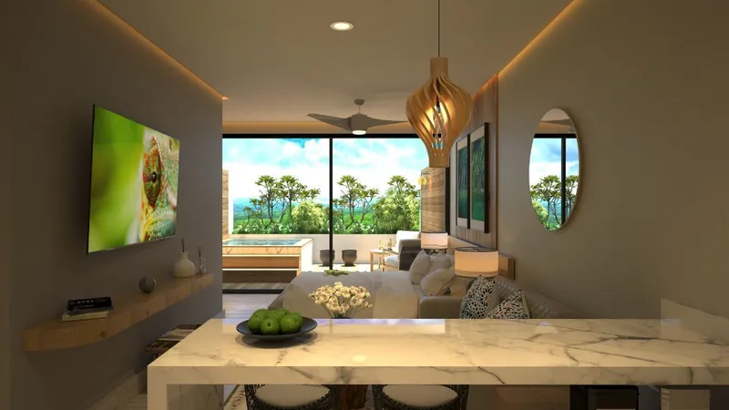 Desarrollo exclusivo con 4 niveles y 84 unidades completamente amuebladas divididas en 2 torres (Torre A y Torre B). La planta baja será una zona comercial de lujo con 6 grandes espacios comerciales. ¡ROI Garantizado! Ubicado en la zona residencial más popular con el mayor crecimiento en Tulum; Aldea Zamá, está rodeada de los mejores restaurantes, delicatessen y cafeterías. Muy cerca de la nueva 5ta Avenida y a tan sólo una milla del centro y las hermosas playas de Tulum. 4 Diferentes modelos a elegir: Estudios, 1 Recámara, 2 Recámaras y 2 Recámaras con sistema de bloqueo. EQUIPAMIENTO: Parrilla Eléctrica, A/C, Ventiladores de techo, Canceles de cristal en la ducha, Microondas, Extractores, Cerraduras ó Chapas electrónicas. MATERIALES: Cancelería, Piso de Mármol travertino texturizado, Closets MDF enchapado, Carpintería, Barandales de cristal templado, Cerámica rectificada, Masilla fina, Granito en cocina y baños. AMENIDADES: Club de Playa, Lobby, Seguridad Privada 24/7, Elevador, Bridge Pool Roof Top, Gimnasio, Servicio Concierge, Asoleadero Roof Top, Sky Bar, Cine, Centro de Negocios, Spa, Sauna y Centro de Yoga. *Precios desde $126,500.00 USD *ROI anual (retorno de la inversión) Garantizado por contrato. *Opción a comprar tu departamento con el paquete de muebles. Clave Interna: QR16 Agenda tu cita al teléfono: *