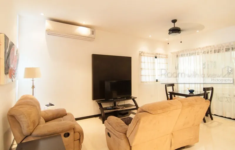 Este encantador departamento en planta baja se divide en dos unidades separadas para rentar. Cuenta con una ubicación inmejorable entre la 5ta Avenida y la playa en el cotizado barrio Coco Beach de Playa del Carmen, justo al norte del centro. Con fácil acceso a las hermosas playas de arena blanca y vistas panorámicas del mar Caribe, este vecindario ofrece un estilo de vida de playa envidiable. Esta es una de las zonas de más rápido crecimiento de la ciudad y atrae a un flujo constante de inquilinos de vacaciones, asegurándole un excelente retorno sobre su inversión. Pase incontables horas en la playa, descansando bajo el sol, nadando o practicando paddle board. Esta tranquila zona de Playa del Carmen está cerca de todos los bienes y servicios de la ciudad, pero se siente escondida de todo, como un verdadero refugio en la playa. Muchos de los mejores restaurantes, clubes de playa y el ferry de Cozumel se encuentran a pocos pasos de distancia. Por la noche, la famosa 5ta Avenida de Playa del Carmen es el lugar para ir de compras, observar a la gente y saborear todas las delicias culinarias que esta diversa región tiene para ofrecer. Este luminoso y moderno departamento de 2 recámaras y 2 baños en Heliko se divide en dos unidades separadas, perfecto para quien quiere vivir en una unidad y alquilar la otra, o para un inversionista que busca un flujo de efectivo inmediato. Cada unidad ofrece una amplia distribución con 1 recámara, 1 baño completo y una cocina completa con electrodomésticos de primera calidad, que incluyen un refrigerador de dos puertas verticales, lavaplatos, horno y estufa con campana extractora. Ambas unidades están equipadas con ventiladores de techo, aire acondicionado y lavadora y secadora. Una gran cantidad de espacio de almacenamiento en la cocina y closets a la medida en cada habitación hacen que este departamento sea cómodo para la vida cotidiana y perfecto para sus huéspedes vacacionales. Heliko cuenta con una increíble área de alberca en la azotea con espectaculares vistas del Caribe y a la ciudad. Por la noche, se pueden ver todas las estrellas o incluso el resplandor de Cozumel. El edificio del condominio es seguro con entrada privada, circuito cerrado las 24 horas, acceso al elevador y estacionamiento. Este departamento en Coco Beach se ofrece a la venta completamente amueblado y listo para rentarse (las unidades no se pueden vender por separado). La venta incluye un espacio de estacionamiento reservado. Póngase en contacto con uno de nuestros agentes para obtener más información o para programar una visita.