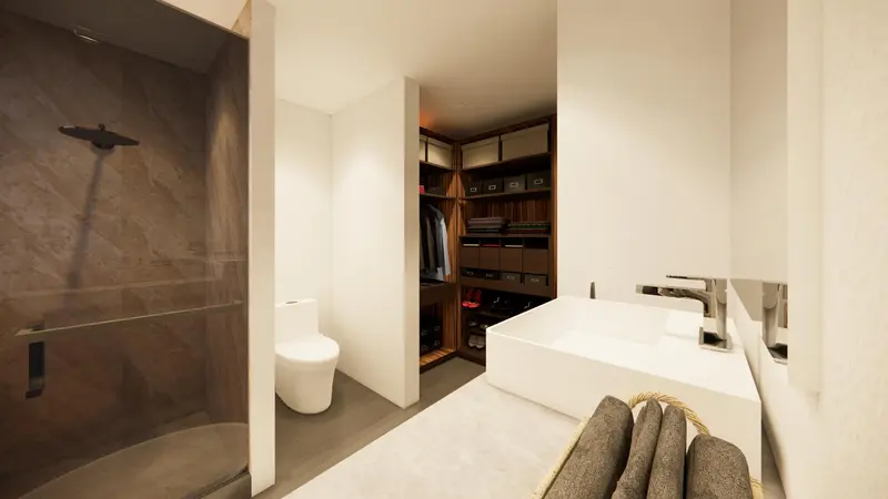 Departamento 308 Departamento en nivel 3. Este departamento cuenta con 2 recámaras, cada una con su baño propio y walk-in clóset. Medio baño para visitas, sala, comedor , cocina, minibodega y balcón. Se entrega con 2 lugares de estacionamiento. CARACTERÍSTICAS ÚNICAS Seguridad 24/7. Lobby con control de acceso. Pórtico de entrada con tarjeta electromagnética. Barda perimetral. Cámaras de seguridad. Estacionamiento techado. Elevadores. Piso y zoclo de loseta cerámica estilo madera en áreas comunes y terraza. Equipamiento del Departamento Closet y gabinete de cocina. Cubierta de cocina (cuarzo). Cancelería de aluminio y cristal claro templado en baños. Llaves de monomando mezcladoras y accesorios cromadas. Aire acondicionado por departamento. Conocemos tu estilo de vida y lo que necesitas para disfrutar de nuestros departamentos de lujo, diseñados para ofrecerte la vida que siempre has imaginado. Encuentra la tipología ideal para tu familia, desde acogedores departamentos de 2 y 3 recámaras hasta amplios penthouses con increíble vista. AMENIDADES Gimnasio equipado Alberca con chapoteadero Family Lounge Estacionamiento techado Seguridad 24/7 Lobby con control de acceso Área de asadores Elevadores UBICACIÓN Es un moderno residencial en Cancún orientado a ofrecer amplios espacios para que familias y parejas puedan construir sus historias de vida con completa seguridad, rodeados de la belleza de la naturaleza y la comodidad de un plan urbano cuidadoso. CERCANÍA A un paso de av.Huayacán, a 35 minutos del aeropuerto, cerca de las mejores escuelas, plazas y restaurantes de la zona. ESPACIO Zelva 44 está rodeado de los bellos espacios de río residencial, con trail para correr y caminar, casa club, área de juegos para los niños y zonas verdes. SEGURIDAD Río residencial cuenta con barda perimetral y entrada con acceso con tarjeta. En tu depa, contarás con lobby con acceso controlado y seguridad 24/7. PLUSVALÍA Haz una inversión inteligente, que te hará feliz, en un residencial con arquitectura de autor, espacios y acabados de gran gusto y en una de las mejores zonas. INSTALACIONES Gimnasio equipado, family lounge lobby con acceso controlado, alberca y chapoteadero, área para niños. Instalaciones para disfrutar. EXCLUSIVIDAD Vive como pocos pueden en un edificio de pocos departamentos, dentro de una comunidad segura, con áreas verdes y disfrutando de gran calidad de vida. CALIDAD En cada aspecto de un desarrollo, tanto los materiales y acabados, como en el servicio, atención y cuidado de los detalles. EXPERIENCIA Invertikal es una empresa cancunense que conoce la zona como nadie, con un historial de proyectos de calidad, seguridad y plusvalía comprobadas. *Precios sujetos a cambio y disponibilidad sin previo aviso *