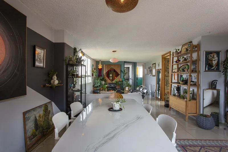 Departamento en venta con vista al Bosque de Chapultepec, ubicado en Calle Gelati en el centro de Colonia San Miguel Chapultepec. Ubicado en piso 8 con vistas muy generosas desde sala, comer y todas las habitaciones. Al ingresar el departamento podrás disfrutar de un espacio de recibidor hacia la sala comedor, amplios espacios, ventanas grandes que te harán disfrutar de la luminosidad del espacio. La cocina es muy amplia y cuenta con un espacio de lavado con baño completo, el cual se puede integrar hacia las habitaciones. Las dos recámaras son muy generosas, amplias, iluminadas y con vistas preciosas de la Ciudad de México. Sin duda si estás en búsqueda de vivir en una de las colonias más céntricas e iconicas de la CDMX esta es una gran opción. Generales: Metraje: 103m2 Recámaras: 2 Baños completos: 2 Estacionamiento: 1