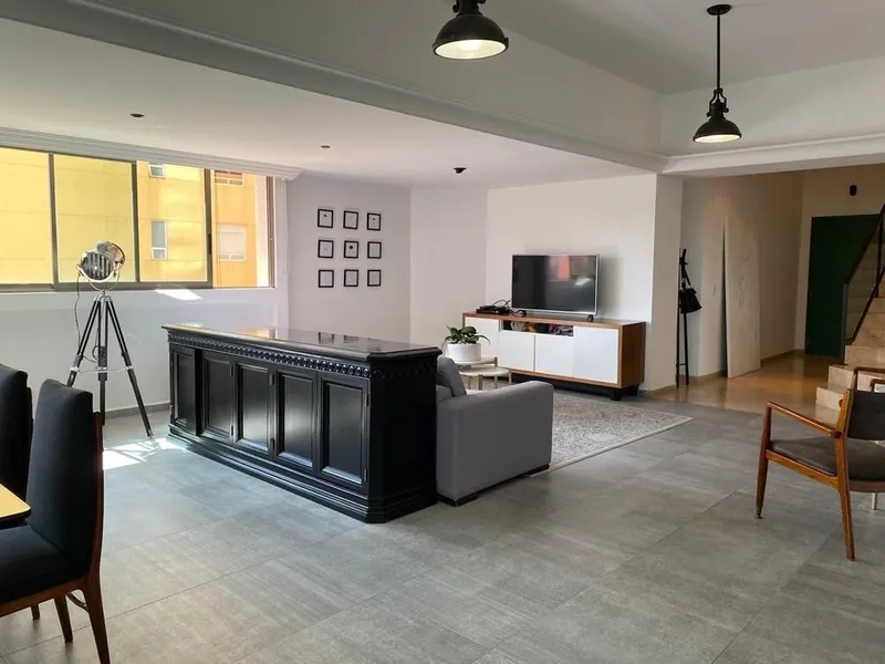 Gran oportunidad!!! Departamento de 258m2 en dos niveles, muy iluminado y calientito. En la planta baja está la cocina, cuarto de servicio completo y área de lavado, sala, comedor, en el segundo nivel están las 3 recámaras, cada una con su vestidor y su baño y una sala de tv. Tres lugares de estacionamiento y una bodega. El edificio tiene jardín, gimnasio, salón de fiestas y ludoteca.