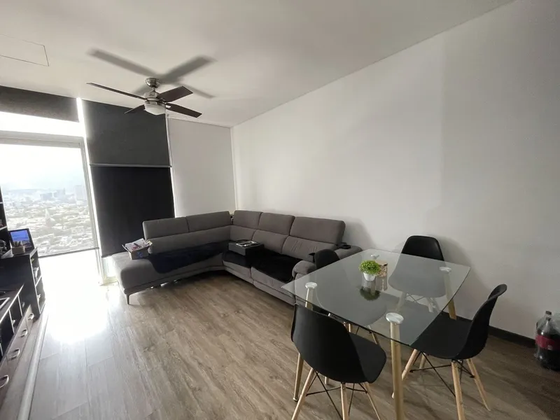 Departamento en el Centro de Monterrey, completamente equipado, con excelentes acabados. TORRE ALUNA. - Departamento: 78.69 m² - Estacionamiento: 13.50 m² 2 recamaras, 2 baños completos, cocina equipada, cuenta con barra de cuarzo, isla, cuenta con puertas de cierre lento, campana empotrada, Lavavajillas, refrigerador, horno empotrado, y triturador de residuos. Área de centro de lavado. Cuenta con 1 cajón de estacionamiento. Piso 17. Otro Equipamiento: - 3 minisplits Dúo Inverter - 3 Ventiladores de techo - Cerradura Inteligente (código, huella, app, conectada a Alexa) - Canceles en c/u de los baños. - Closets - Canceles La Torre: Recepción 2 elevadores + elevador de carga. Estacionamiento de visitas (E6) Pet Friendly. Amenidades: Alberca, Gym, 4 asadores, cine, Sports Bar, 2 terrazas, Salones de usos Múltiples. Cisterna. Mtto. aprox $2,100 por el momento no se paga. Predial 2024 pagado. Excelente para vivir o invertir. Acepta Airbnb. Zona: Rápido acceso a avenidas como Av. Madero, Av. Venustiano Carranza, Av. Cristóbal Colon y Av. Constitución. A minutos de Zona Valle Oriente San Pedro Garza García, Av. Morones Prieto. *El precio de esta propiedad esta sujeto a cambios sin previo aviso. Contemplar gastos de escrituración (derechos, impuestos, honorarios, avalúo en su caso), calculados por la notaria designada para la operación.*