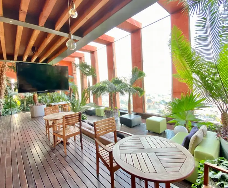 El edificio más emblemático en Paseo de la Reforma, proyecto del Arq. Alberto Kalach Fusión de 2 departamentos, el principal mide 157 m2 y cuenta con cocina integral de lujo, sala comedor, 1 recámara y 1.5 baños. Área de lavado y chimenea, 1 bodega El departamento secundario cuenta con 2 recámaras, 2.5 baños. 4 estacionamientos en total Carpintería de encino americano, cancelería douvent, mármol travertino en cocina y baños, puerta de acero contra incendios, detector de humo, balcones. Gimnasio, alberca, jacuzzi, spa, cafetería. Lobby, valet parking, bussines center, seguridad 24/7 307 metros totales