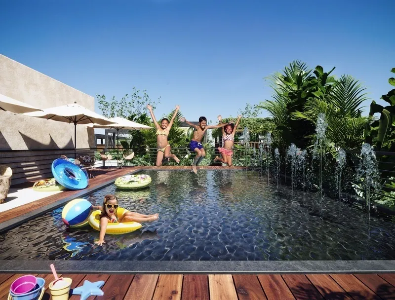 Este es un nuevo y emocionante desarrollo de departamentos con amenidades estilo resort en la Región 15 de Tulum. Rodeado de selva tropical, antiguas ruinas mayas, ríos subterráneos y cenotes, el complejo está ubicado a solo minutos del elegante centro bohemio de Tulum y la nueva carretera que conduce directamente a la zona hotelera y a las hermosas playas de arena blanca. Este nuevo y hermoso desarrollo residencial ofrece departamentos de 1, 2, 3 y 4 habitaciones con diferentes diseños y opciones para satisfacer sus necesidades, incluidas unidades de cierre para aprovechar mejor los espacios y potenciaizar los ingresos. El desarrollador ha tenido mucho cuidado en preservar el 40 por ciento de la selva existente y garantizar que la cantidad máxima de vegetación se mantenga intacta. Todas las residencias están diseñadas para integrarse con el entorno tropical y cuentan con tonos neutros y materiales naturales, como Chukum (piedra maya) y acabados duraderos de madera Tzalam (nogal caribeño) y Cumaru. Algunas de las amenidades que disfrutará incluyen albercas, cine al aire libre, gimnasio interior y exterior, bicicletas, spa con temazcal, yoga, jardines orgánicos y un bar de jugos. Las familias con niños pequeños pueden aprovechar del club infantil, un muro para escalar y toboganes de agua. Este complejo es seguro con entrada privada, estacionamiento, acceso al elevador y seguridad las 24 horas. Estos departamentos son una inversión fantástica quien desea capitalizar responsablemente el crecimiento de la Riviera Maya. Se ofrecen a la venta sin muebles pero equipados con ventiladores de techo, aire acondicionado y algunos electrodomésticos. Póngase en contacto con uno de nuestros agentes amigables y expertos hoy para precios y opciones de preventa.