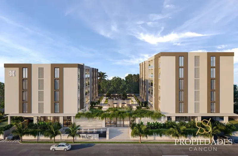 KYO Blum es una comunidad residencial con un estilo de vida relajado que invita a desconectar para conectar contigo mismo. Una nueva forma de vivir donde la tranquilidad y el bienestar serán parte de tu "día a día". Kyo Blum es una comunidad residencial con un estilo de vida relajado que se hace presente, invitándote a desconectar para conectar contigo mismo. EL PROYECTO 5,979 m2 superficie de terreno 12,395 m2 totales de departamentos 167 cajones asignados 2 elevadores por torre 2 Torres 149 Departamentos 1,2,3 recámaras Desde 61 m2 hasta 137 m2 Amenidades: • Alberca • Asoleadero • Área de juegos infantiles • Asadores • Área de lounge • Lobby (acceso controlado) • Baños y vestidores • Andadores exteriores • Área de activación • Áreas verdes • Área de relajación Mantenimiento por M2: 45 Precio desde: $3,673,638 MXN Precio hasta: $7,345,428 MXN
