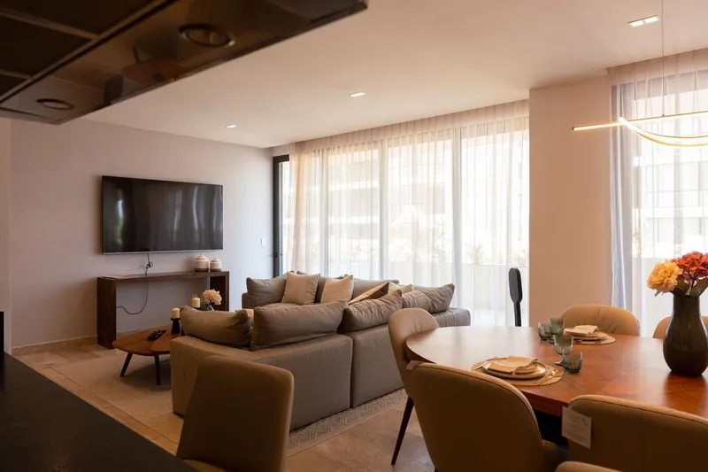 Zaguán es un desarrollo de usos mixtos compuesto por 15 niveles; 104 departamentos, 6 penthouses, 8 espacios de oficina y 3 espacios comerciales. Ubicado en Santa Gertrudis Copó, el complejo cuenta con más de 25 amenidades; entre ellos alberca, salón de yoga con vista al cielo, bar en las alturas, gimnasio al aire libre y tintorería. AMENIDADES ÁREAS PÚBLICAS: -Lobby -Motor lobby -Tiendas concepto -Gastronomía -Café especialidad -Estudios públicos -Locales comerciales -Oficinas AMENIDADES ÁREAS PRIVADAS: -Gimnasio -Track -Cancha de pádel -Carril de nado -Salón de yoga -Spa -Meditación -Parques -Parque de mascotas -Jardín de meditación -Ludoteca -Jardines verdes -Bar en las alturas -Terraza mirador -Alberca -Bar en la alberca -Zona de parrillas -Área multiusos (salón) -Tintorería -Provisiones -Estudios privados -Barra de café -Zona de trabajo abierto MODELO COTIZADO: San Cristóbal piso 14 ENTREGA Enero 2025 CARACTERÍSTICAS: - Recámara principal con clóset* y baño completo - Dos recámaras (secundarias) con clóset y baño completos - Terraza - Cocina - Área de lavado - Sala* DIMENSIONES: - 99.71 M2 interiores - 13.59 M2 Terraza techada - 25 M2 Parking - 138.3 M2 Total ESQUEMA DE PAGOS: - Enganche 20% - Mensualidades 15% - Saldo 65% - Apartado $20,000 válido 7 días Agenda tu cita con nuestros asesores para visitar el showroom.